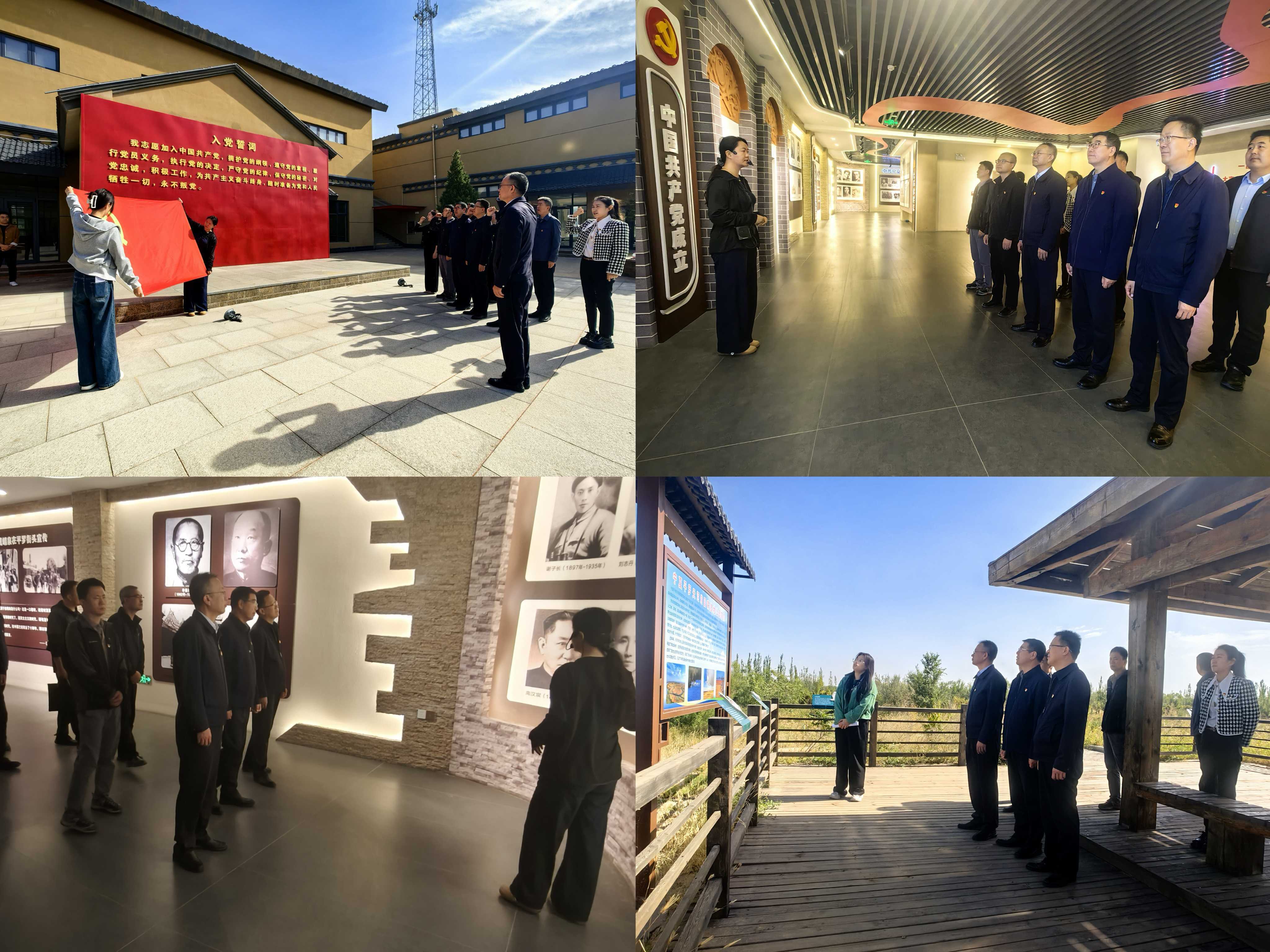 在黄渠桥红色教育基地,党员们循着历史足迹,重温革命岁月,通过一幅幅珍贵图片、一件件历史实物,深入了解1938年中共地下党员杨一木在此建立宁夏北部第一个党支部,带领各族群众团结一心开展抗日救亡工作的光辉历程。讲解员的深情讲述让大家深刻认识到,革命年代的胜利离不开各民族的同心同向、守望相助,红色基因中早已镌刻下民族团结的精神密码。全体党员在党旗下重温入党誓词,进一步坚定理想信念。