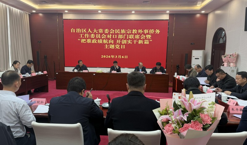 三月春风,暖意融融。近日,自治区人大常委会民族宗教外事侨务工作委员会召开对口部门联系会,以“党建+业务”模式,联合自治区人大常委会机关、自治区党委外事办、自治区民委、自治区文化和旅游厅等单位党支部,共同开展“把准政绩航向 开创实干新篇”联合主题党日活动,围绕年度工作任务,开展理论学习、工作座谈、党建交流,强化理论武装,凝聚思想共识,汇集奋进力量。