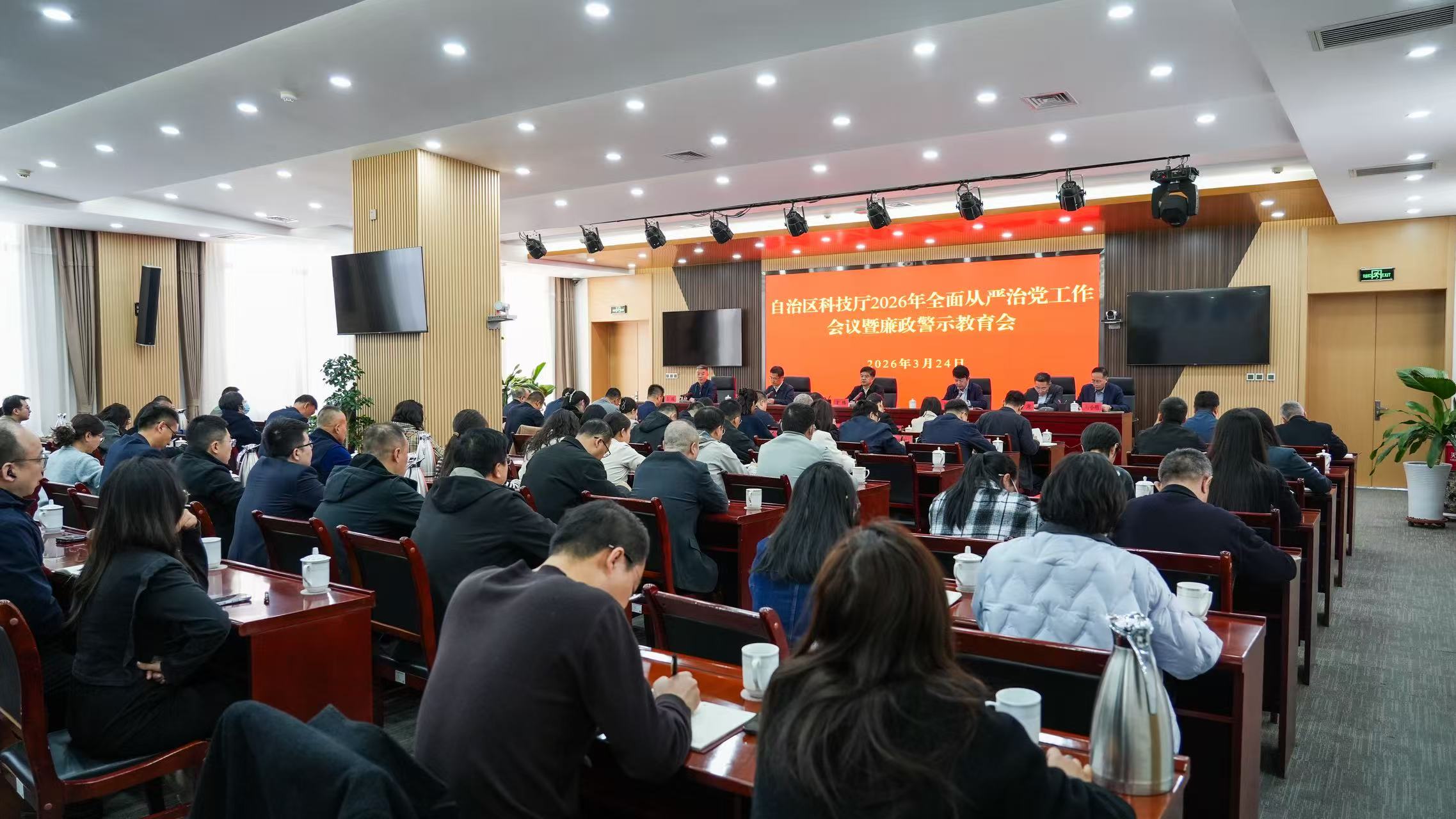 近日,自治区科技厅召开2026年全面从严治党暨廉政警示教育会,传达学习二十届中央纪委五次全会和自治区纪委十三届五次全会精神,总结2025年度全面从严治党暨党风廉政建设工作,安排部署2026年重点任务,结合自治区“领导干部廉政警示教育周”安排,启动开展廉政警示教育活动。