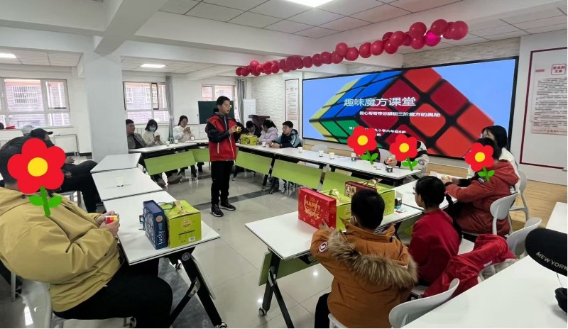 智趣课堂,点亮七彩童年。为丰富孩子们的精神文化生活,活动还特别邀请银川市金凤九小的“爱心哥哥”,为孩子们带来了一堂生动有趣的魔方公益课。志愿者耐心讲解魔方的转动原理和还原技巧,手把手地教孩子们如何通过观察、思考来解决难题。小小的魔方在孩子们手中转动,不仅锻炼了他们的动手能力和逻辑思维,更在互动中传递了快乐与自信。