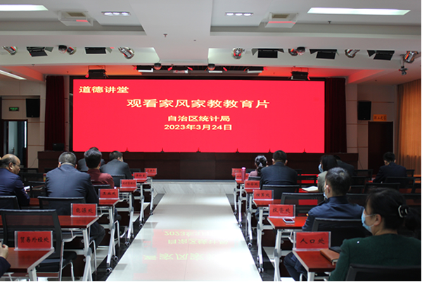 为深入贯彻落实全面从严治党要求,扎实推进“廉政警示教育周”活动和“两个永远在路上”学习教育实践活动,不断增强局机关党员干部廉洁从政意识,推动形成注重家庭、注重家教、注重家风的良好氛围,切实把家风建设摆在重要位置,共同筑起反腐防腐和倡廉促廉的家庭防线,近日,自治区统计局开展“清廉家风”道德讲堂活动,组织局机关党员干部观看家风家教警示教育片《远离家庭腐败》。
