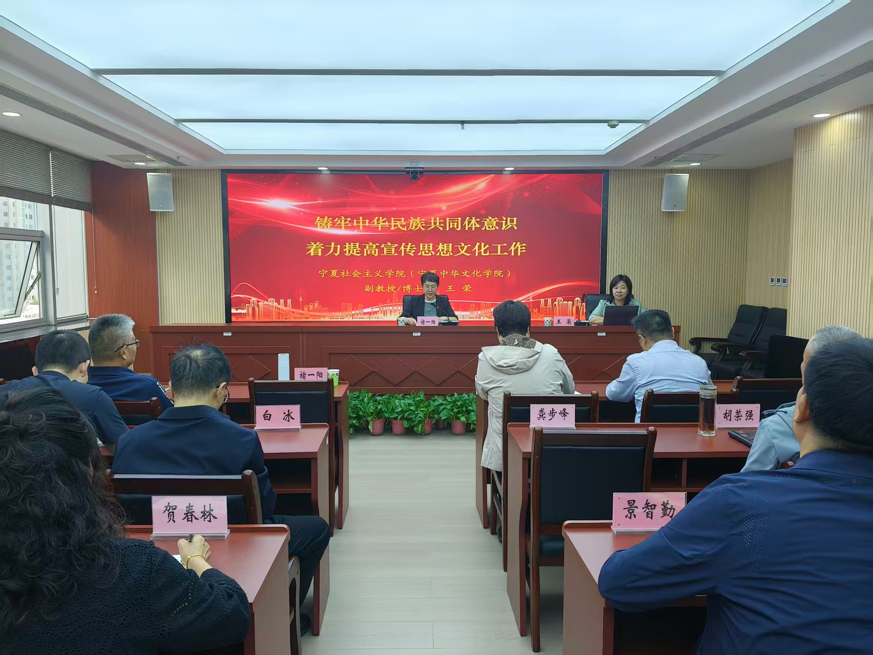 会议邀请宁夏社会主义学院民族宗教理论教研室副教授王荣同志作专题辅导,从“理论根基:铸牢中华民族共同体意识是马克思民族理论中国化的最新成果”“时代要求:铸牢中华民族共同体意识是实现中华民族伟大复兴的时代使命”和“实践路径:铸牢中华民族共同体意识是贯穿新时代民族地区各项工作的主线”三个方面,对铸牢中华民族共同体意识进行系统讲解和深入阐释,引导党员干部准确把握民族工作方向,进一步增强使命担当。