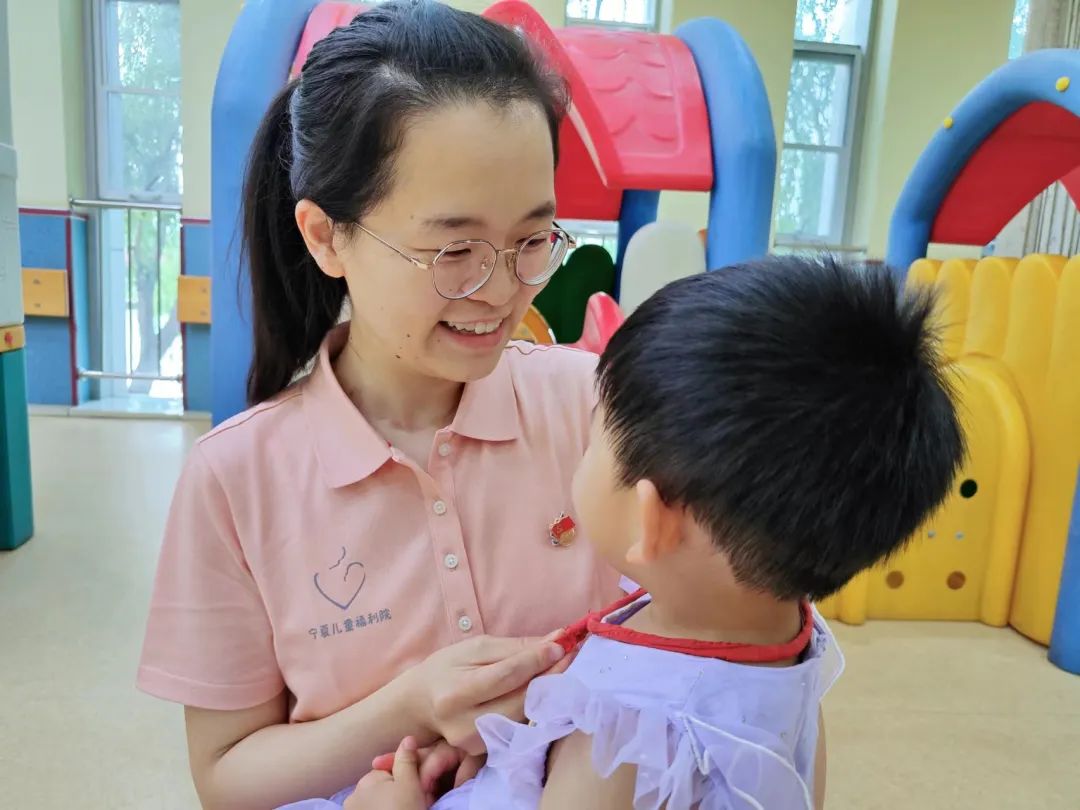 作为一名母亲,儿童福利院孩子的病痛让她感同身受,常常使她一边护理一边流泪。一位肛门闭锁及腭裂较重的小宝宝,一期手术腹部造瘘口术后,粪便及肠液不停排出,有时孩子哭闹粪便会飞溅到脸上、身上,她每隔四五分钟清理护理一次。孩子有低血糖,她每隔两三个小时抱起来一点一点喂奶,两顿奶之间还要加糖水,在床边一站就是几个小时。在她和同事们的精心照顾下,孩子体重达标,顺利完成几次手术,目前恢复得憨实可爱,每天参加各种康教小课堂活动和户外游戏。这只是她护理众多危重症儿童中的一个。在她和团队的努力下,多少身患重残的低体重早产新生儿、命悬一线的弃婴转危为安、奇迹存活、健康成长。她们用实际行动诠释“虽非亲骨肉、依然父母心”的大爱情怀!