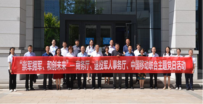 “总书记怎么说,我们就怎么做,不仅要做到,而且要做好”。在第95个“八一”建军节来临之际,为深入学习贯彻习近平总书记关于退役军人工作的重要论述,以实际行动学习好宣传好贯彻好自治区第十三次党代会精神,7月27日,自治区商务厅流通处党支部、机关党委党支部、驻厅纪检监察组党支部、自治区退役军人事务厅机关党委党支部、拥军优抚和褒扬纪念处党支部、中国移动宁夏分公司市场部党支部等6个党支部联合开展了“崇军拥军 和创未来”主题党日活动,旨在以党建为引领,发挥政企资源优势,推出服务现役军人、退役军人的通讯消费优惠措施,营造崇军拥军浓厚氛围。