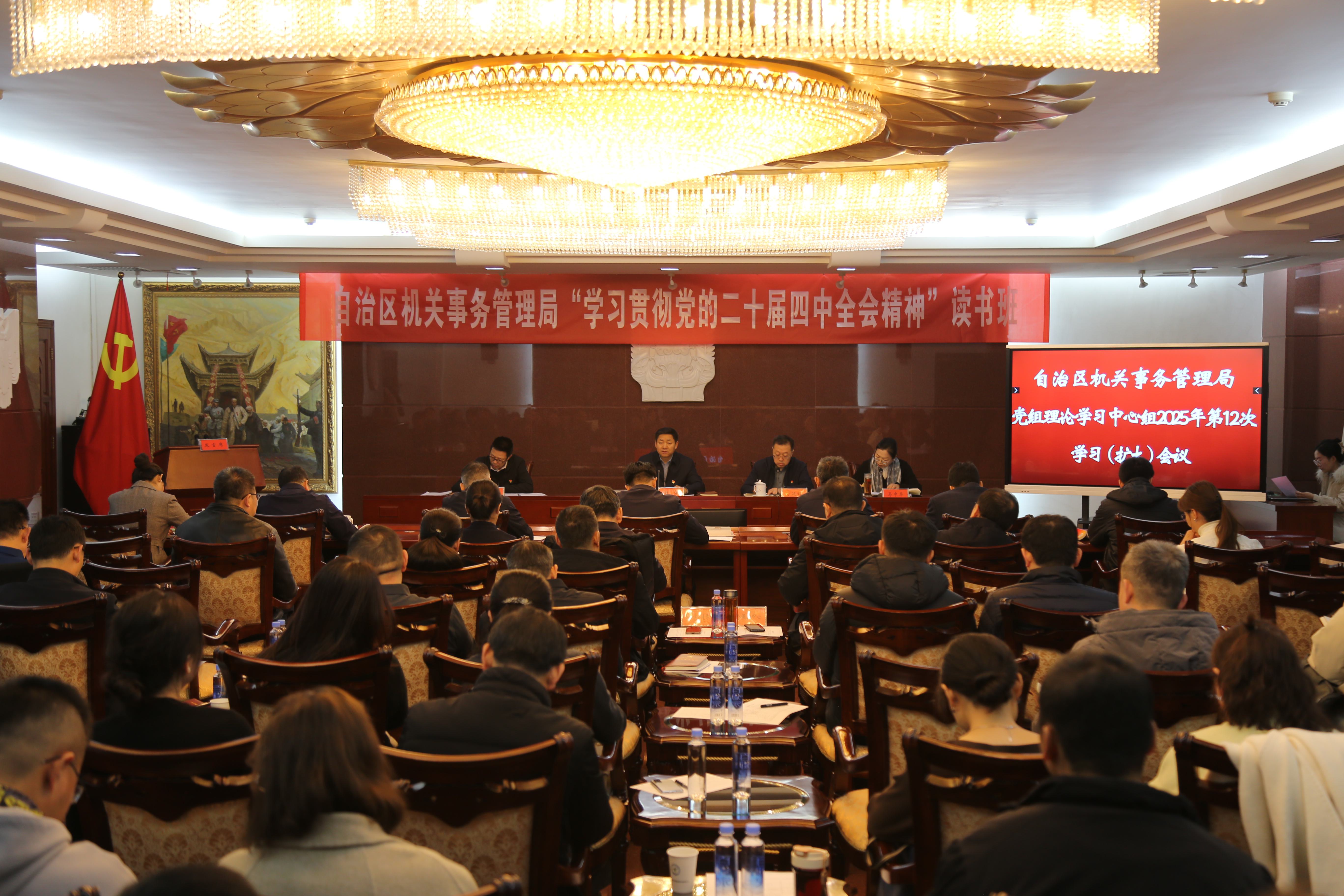 近日,自治区机关事务管理局召开2025年党组理论学习中心组第12次学习(扩大)会议,局党组成员、各基层党组织书记、局属单位班子成员、四级以上调研员、科级以上干部,局机关全体干部100余人参加会议。