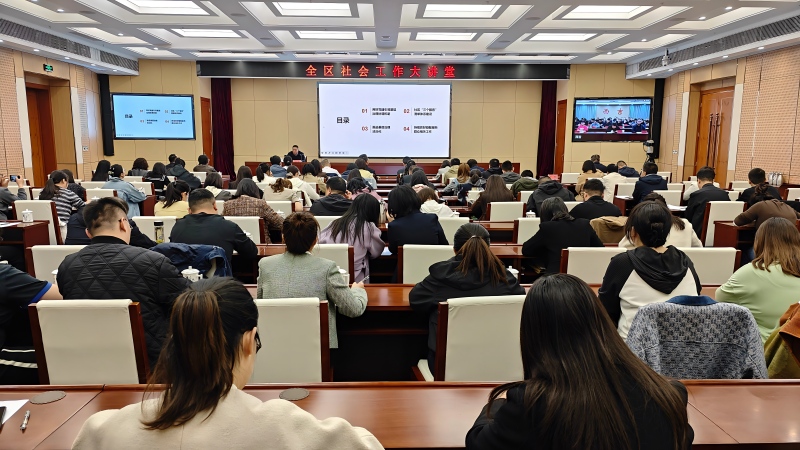 为深入学习贯彻习近平总书记关于社会工作的重要论述,认真落实全区社会工作部长会议精神,进一步统一思想、凝聚共识,明确目标、压实责任,切实抓好全区社会工作各项任务落实。近日,2026年全区“社会工作大讲堂”第一期开讲,采取“同上一堂课”的方式,在银川市设主课堂、各市、县(区)设分课堂,推动优质课程直达一线,不断提升社会工作系统干部履职本领。全区社会工作系统干部,部分乡镇(街道)分管社会工作负责同志及社区书记近500人参加。