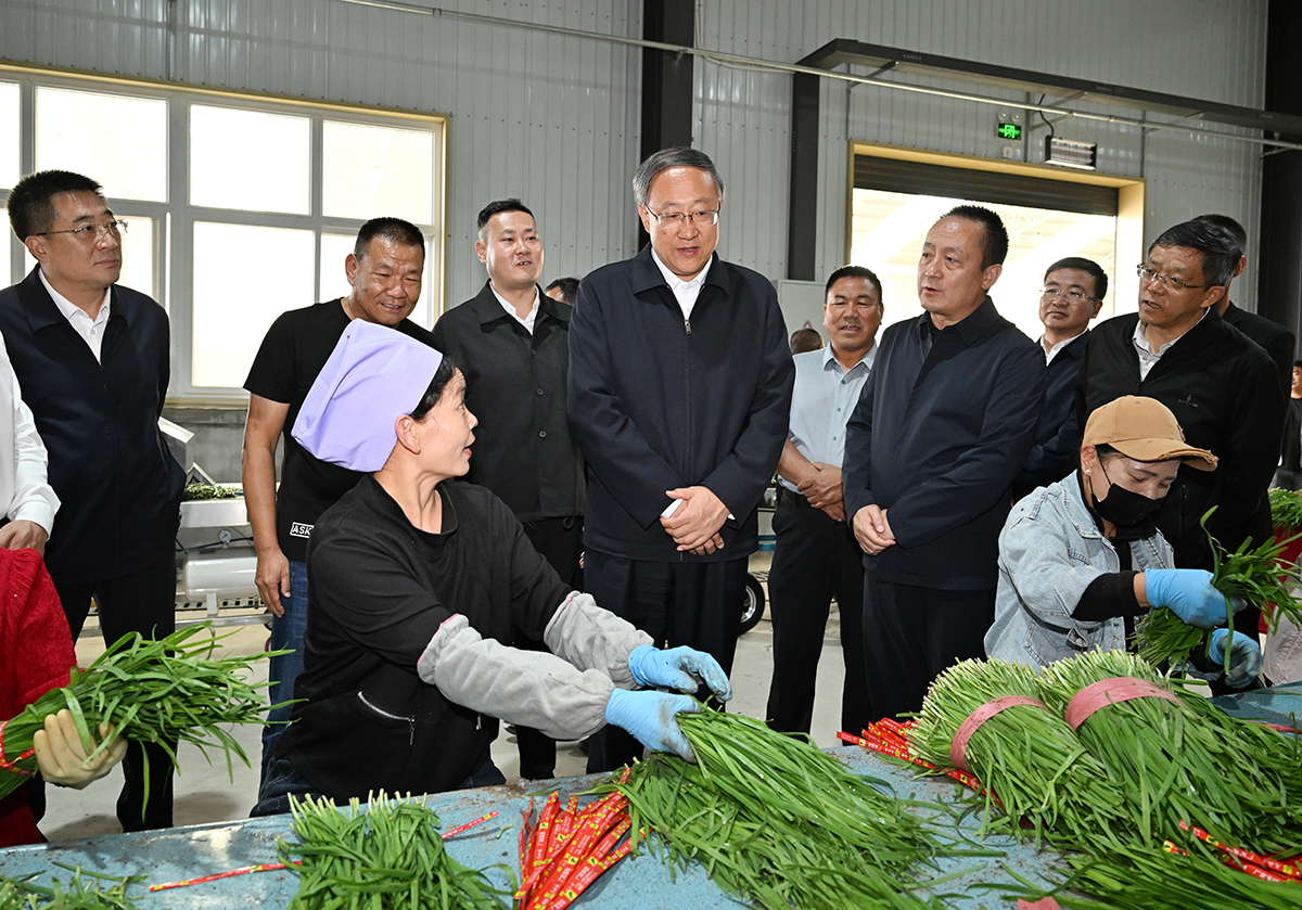 李邑飞在灵武市郝家桥镇夏能生物科技有限公司种植基地,调研推动巩固脱贫攻坚成果与乡村振兴有效衔接,发展现代农业促进移民村创业带动、就业帮扶、群众增收等情况。