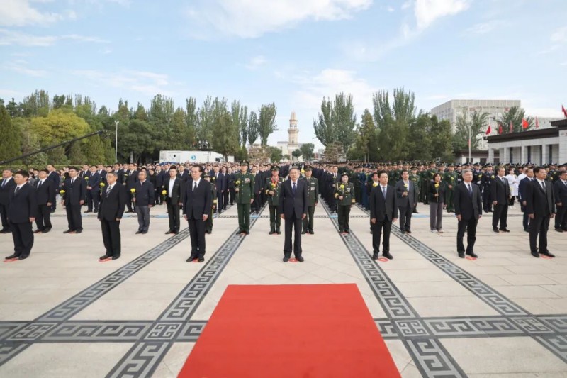9月30日,自治区在银川市烈士陵园隆重举行烈士纪念日向人民英雄敬献花篮仪式。