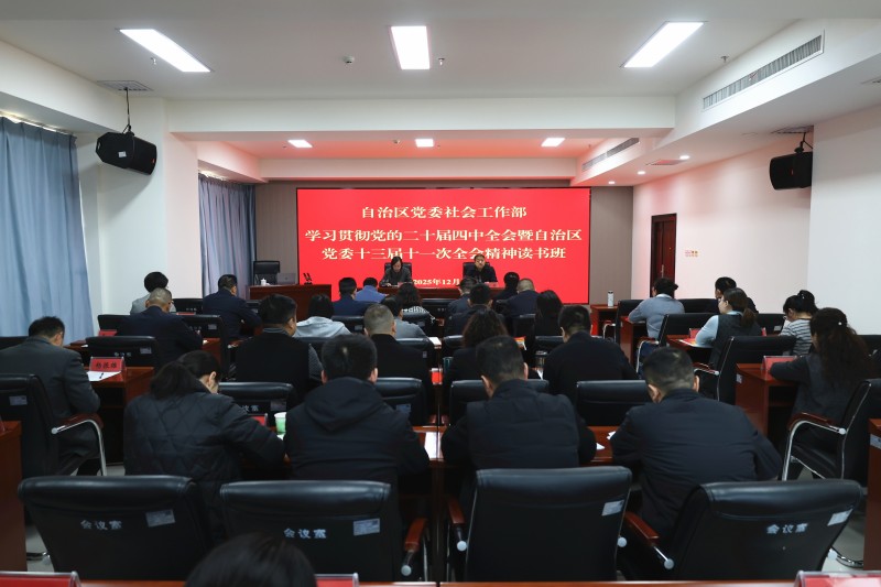 为深入学习贯彻党的二十届四中全会和自治区党委十三届十一次全会精神,自治区党委社会工作部举办为期2天的读书班。