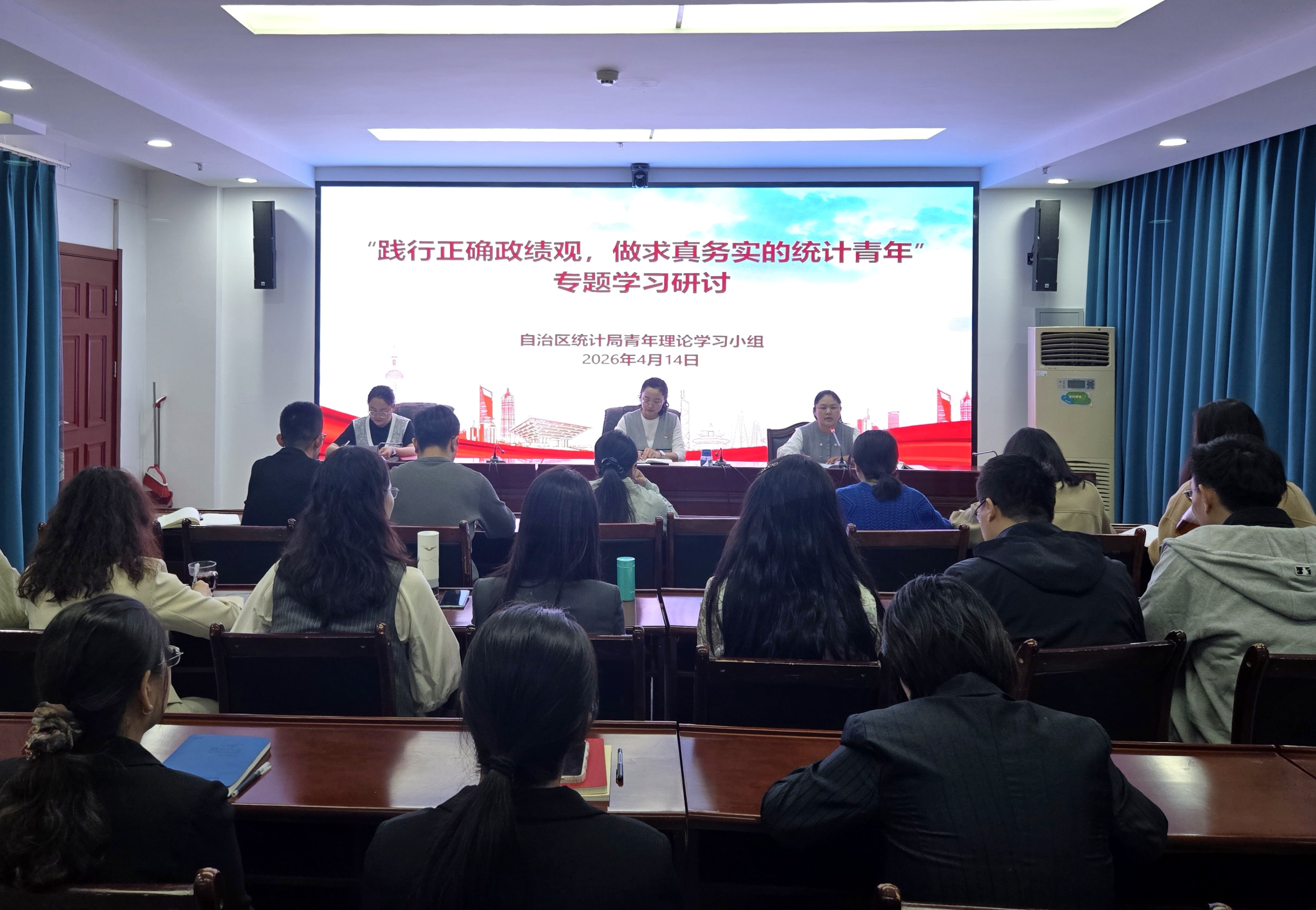 为扎实推进树立和践行正确政绩观学习教育,切实抓好年轻党员、干部的理论武装和思想引领,近日,自治区统计局青年理论学习小组开展专题学习研讨。局青年理论学习小组成员参加。