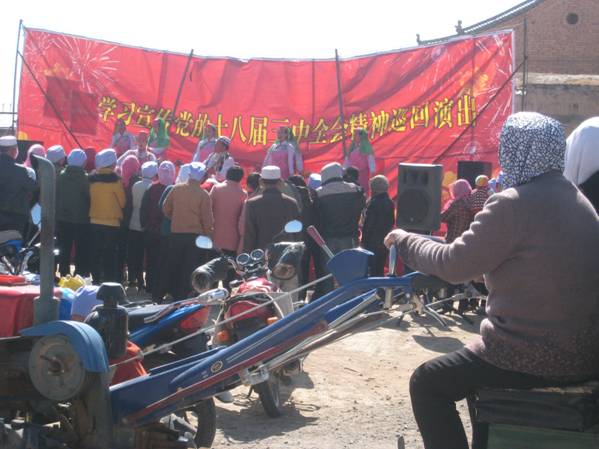 五是结合送文化,进一步丰富农民群众的精神生活。在开展送政策、送项目、送技能、送健康的同时,自治区直属机关工委“下基层”工作组还把丰富群众的精神生活、用社会主义新农村建设的新风尚引领农民转变观念。区直机关工委自费邀请银川市兴庆区掌政镇农民文化艺术队为赵家树村老百姓送去一台群众喜闻乐见的反映歌唱新农村建设、鞭挞农村陈规陋习、讲解农村脱贫致富的农家节目。村民马彦明高兴地说,这样的节目要多演,既活跃了群众的业余文化生活,又达到了教育人的效果,实在好。