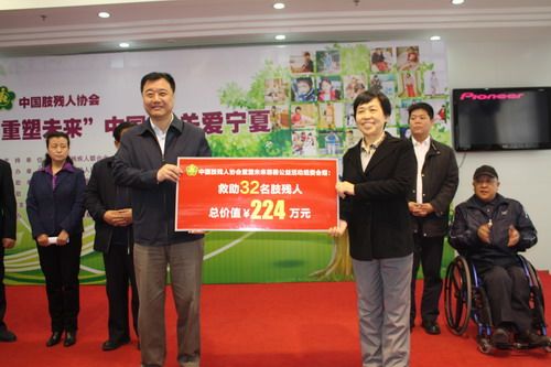 捐赠仪式上,“重塑未来”慈善公益活动组委会现场向我区首批赴京接受救治的32名残疾儿童捐赠了224万元的治疗费用,并向宁夏肢残人协会捐赠了价值70万元的可自动升降轮椅面包车1辆。