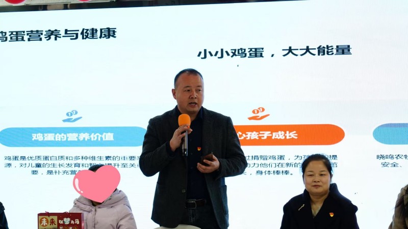 寓教于乐,传递健康理念。“一颗小小的鸡蛋,藏着大大的营养学问。”爱心企业代表化身科普讲师,从鸡蛋的营养价值讲到蛋白质对成长的奥秘,深入浅出地引导孩子们认识到均衡饮食的重要性,并传授了鸡蛋储存的“生活小妙招”。生动的讲解不仅拓宽了孩子们的视野,更在他们心中播下了健康生活的种子,现场欢声笑语不断,学习氛围浓厚。