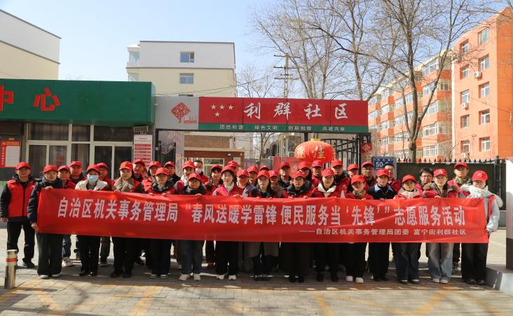 近日,自治区机关事务管理局团委组织青年志愿者赴兴庆区利群社区,开展“春风送暖学雷锋 便民服务当‘先锋’”主题志愿服务活动,近50名青年干部参加活动。